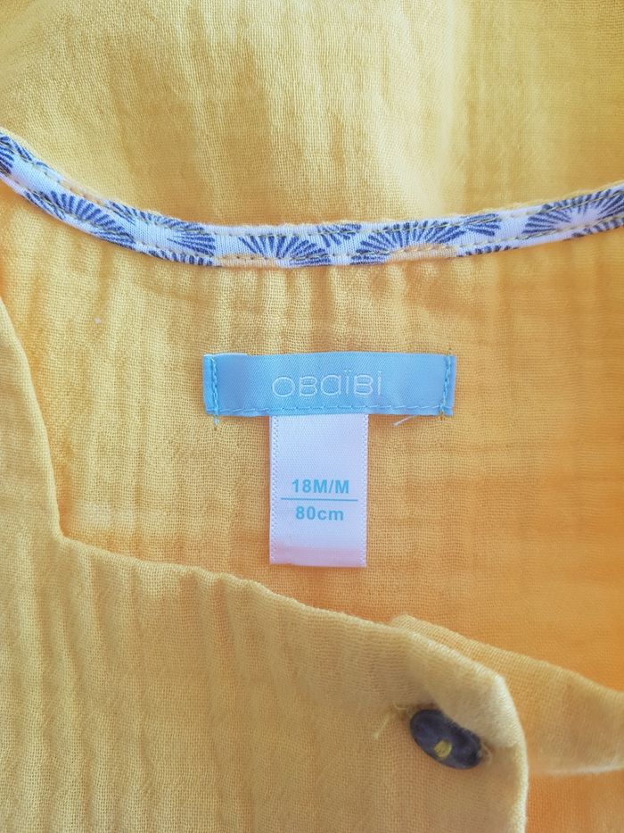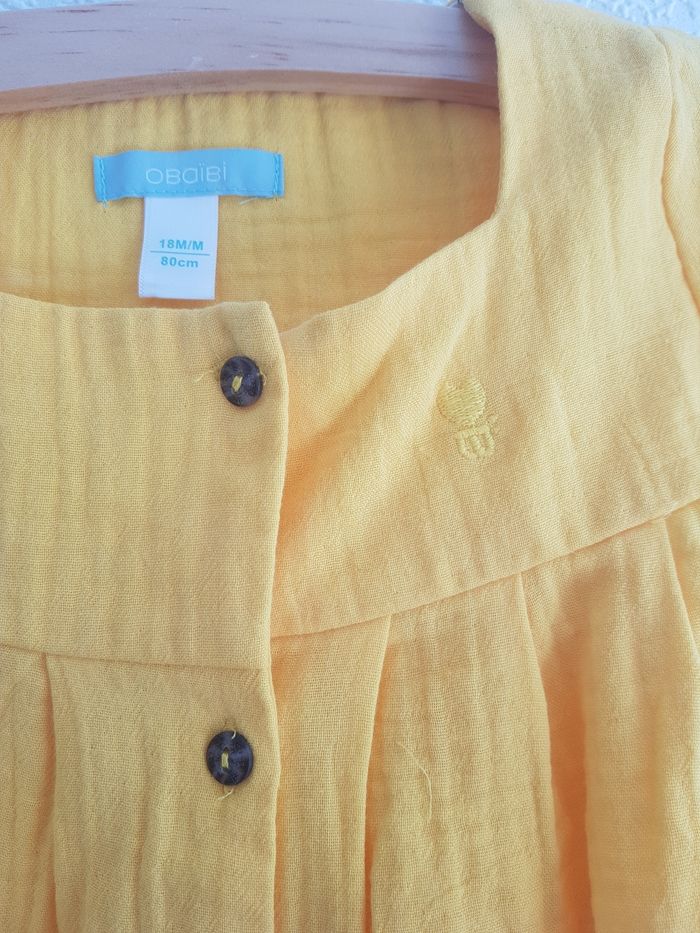 Tous mes articles Obaïbi : #obaibisev Toutes mes robes : #robesev Tous mes habits fille 12 mois : #12moissevfille Tous mes habits fille 18 mois : #18moissevfille 🚨 Prix fixe Robe manches courtes Marque : OBAÏBI Couleur : jaune Taille : 18 mois - 80 cm État : neuf 100% coton Retrait sur place ou envoi.