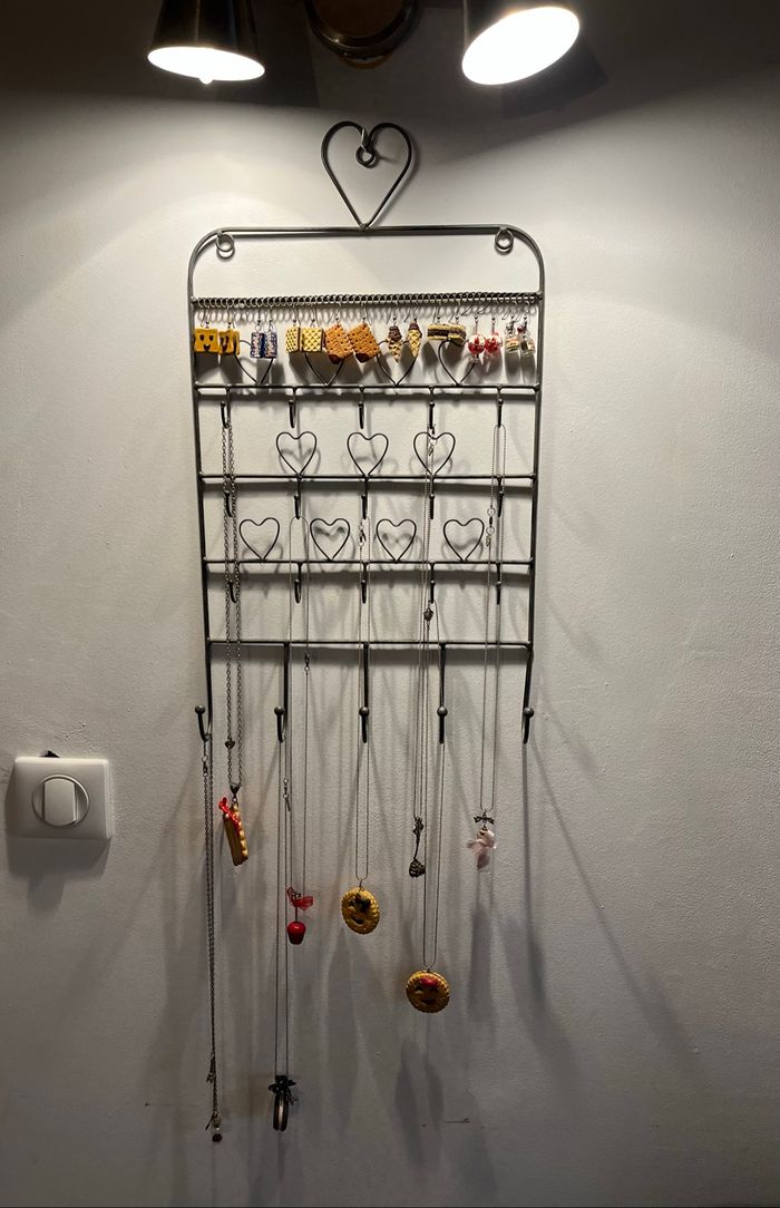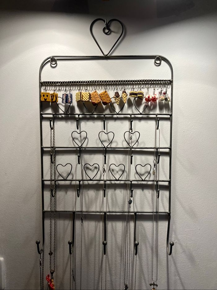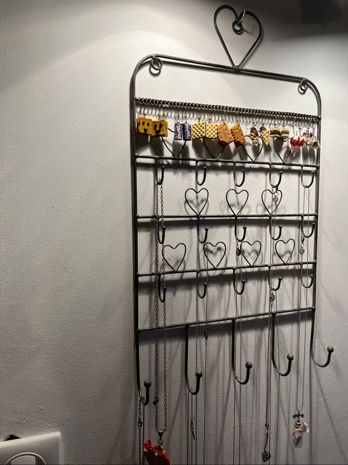 〰️ Porte bijoux à accrocher, motifs cœurs, métal gris. 🌸 Etat : TBE (vendu sans bijoux) 🌸 Marque : Maison du Monde 🌸 Dimensions : 50X30 cm 🏷 Les réductions sur les lots sont activées ⏳️ Pas de réservation ✂️ Les colis sont soigneusement emballés 🎁 Un petit cadeau sera mis dans chaque colis #virginie63zbijoux