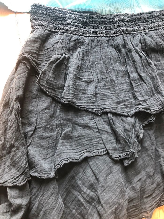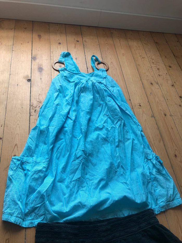 Lot robe fine anneaux en bois comme bretelle neuf Jupe trapèze à volants couleurs un peu passés je la donne avec