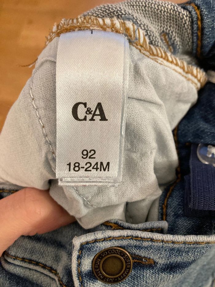 Jean enfant, taille 18/24 mois, marque C&A, effet délavé, taille réglable et fermeture par bouton pression #jeanenfant #c&a