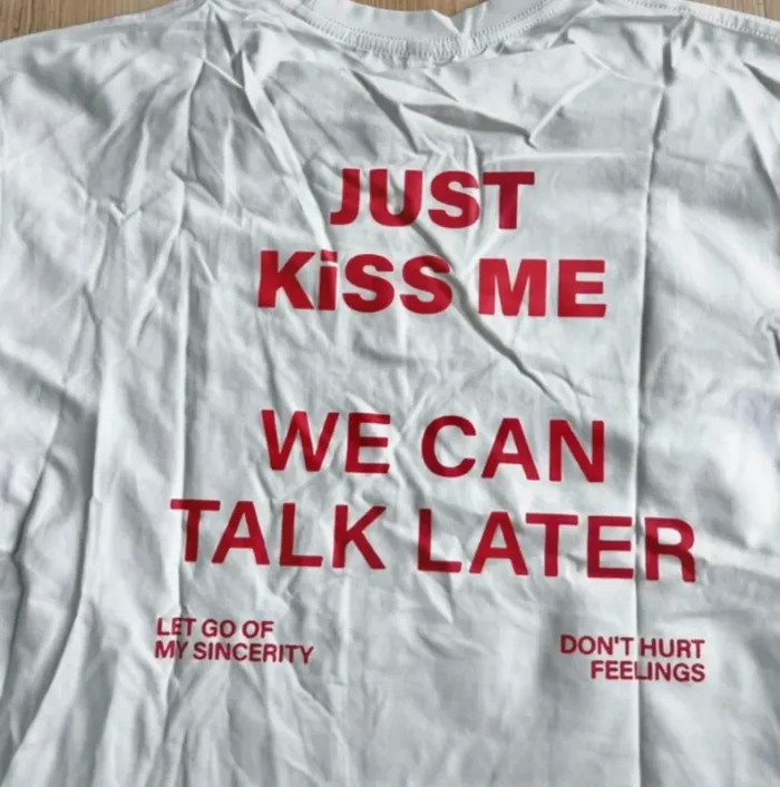 T-shirt Blanc Rouge Just Kiss Me Talk Me Later Taille M Y2K