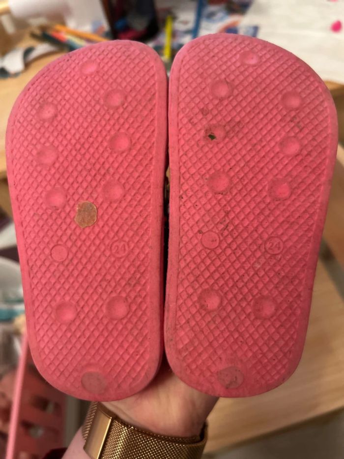 🌺 claquettes fille avec élastique pour maintenir le pied taille 24 en tbe 🌺
