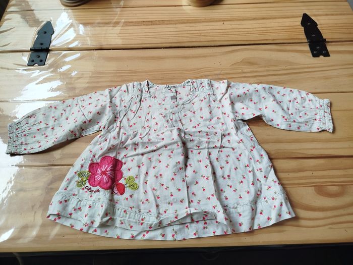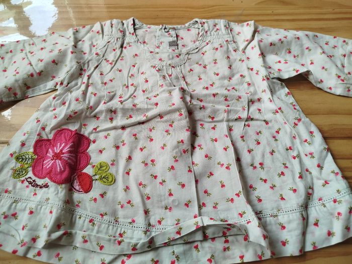 Maillot manche longue blanc motif radis et fleur marque catimini taille 12 mois