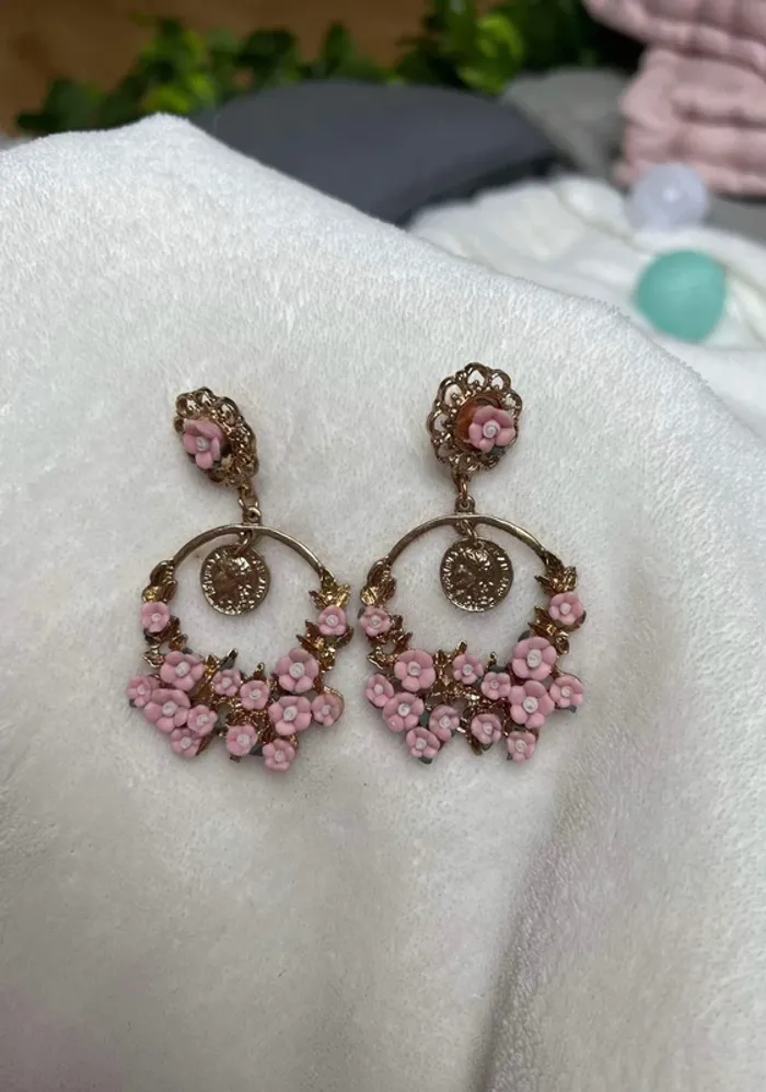Boucles d'oreilles pendantes vintage baroque dorées et roses. 📦 Envoi rapide et soigné. 🛍 J’applique un pourcentage sur les lots ⚠️⚠️ 💍📿💎Pour voir tout mes bijoux a petit prix : #lauremaz_bijoux #bouclesdoreillesbaroques #bouclesdoreillesroses #bouclesdoreillesfleurs #bouclesdoreillesimposantes #secondhand #secondemain #bouclesdoreillesdorees #bouclesdoreillespendantes #moinsde5euros #quatreeuros #photoportée #4euros ☺️ - pendientes - orecchini - earrings - brincos - Ohrringe