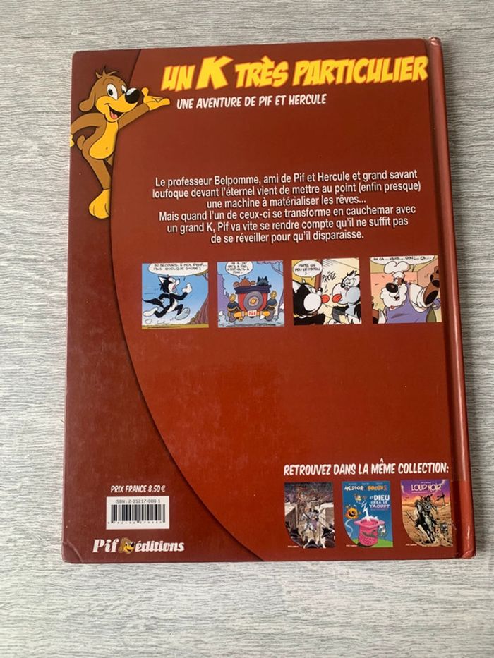 BD les aventures de Pif et Hercule : un K très particulier en assez bon état. Les coins présentent des traces d’usures et la bd a était plastifié et à une étiquette plastique collé à l’intérieur. Il y a 46 pages.