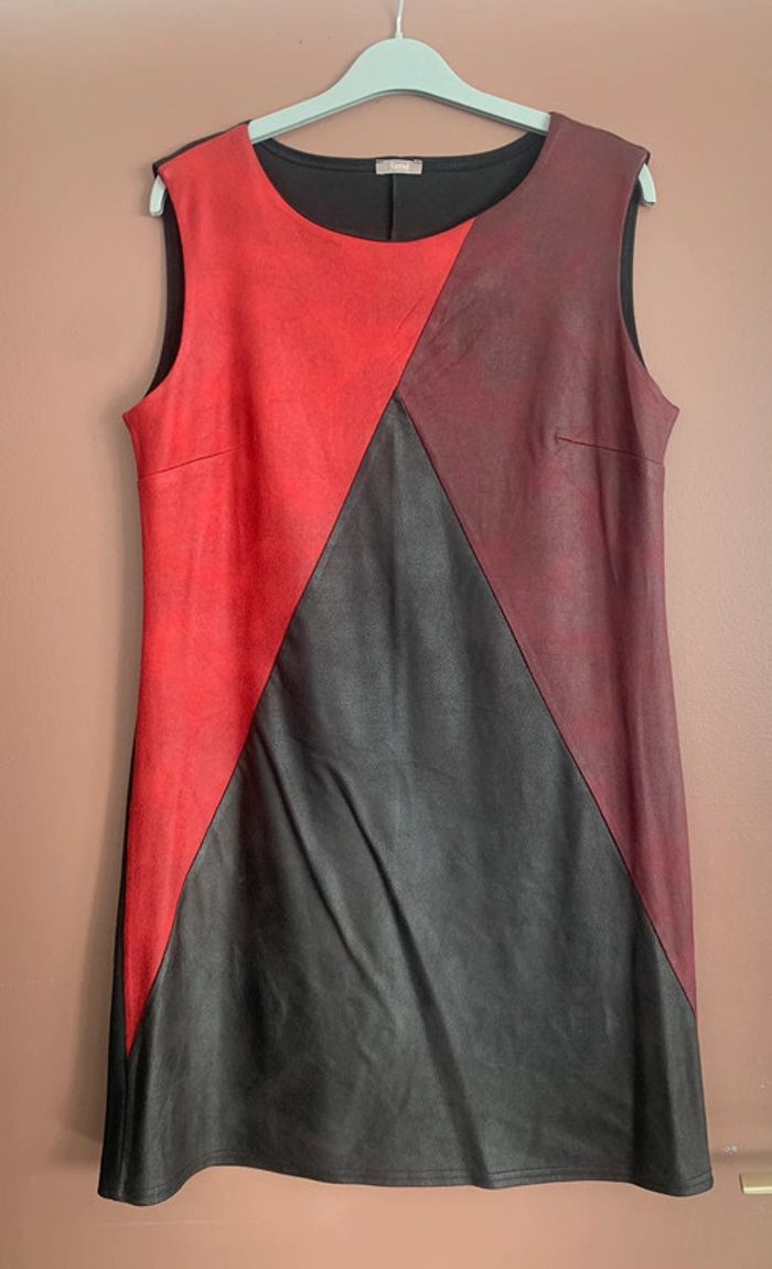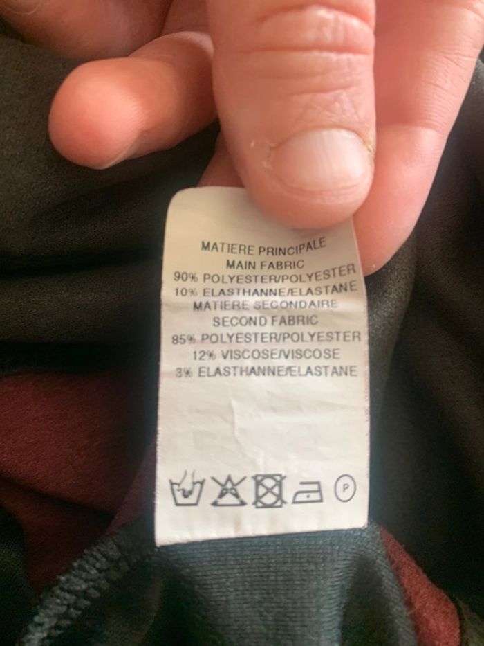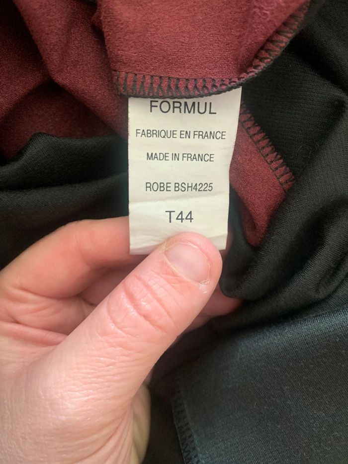 Robe - Taille 44 en bon état. Elle est épaisse, idéal pour l’hiver. Longueur : 85 cm environ. Composition: Matière principale 90% polyester 10% elasthanne, matière secondaire : 85% polyester, 12% viscose et 3% elasthanne.