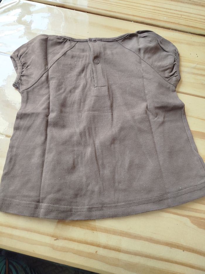 Maillot manche courte marron à ligne rose rouge et bleu marque kimbaloo taille 12 mois