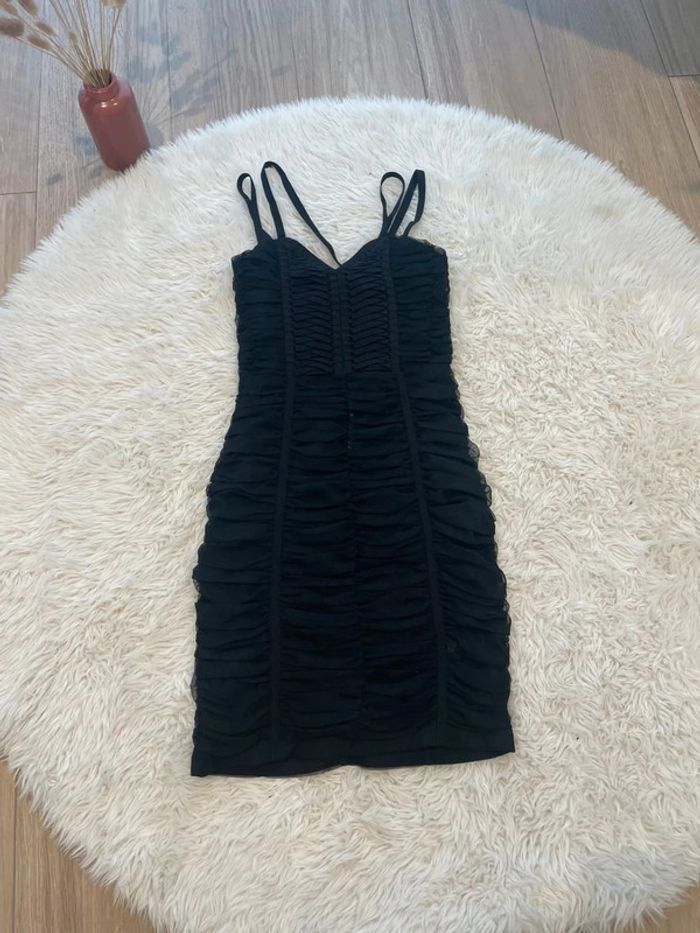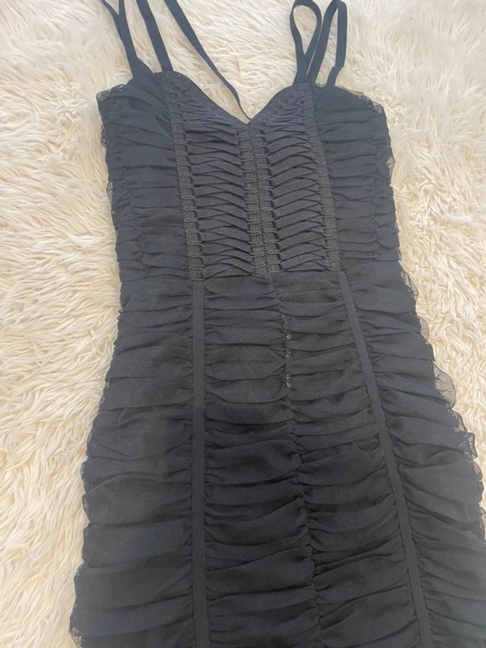Taille 36 Très jolie robe sexy chic avec détails froufrous froncés et col lacets