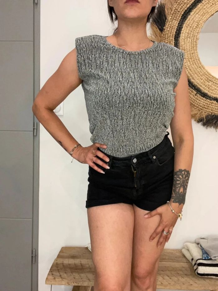 Cache cache T shirt épaulette argenté Taille XS