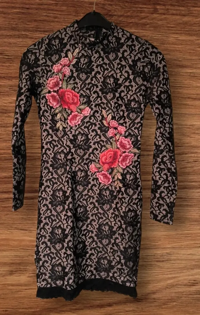 💃 Élégante et féminine, cette robe noire à manches longues est un vrai bijou 🖤 Tissu en dentelle délicate avec doublure nude en dessous 🌺 Superbes broderies florales en relief – ultra chic ! 🎯 Coupe près du corps, idéale pour une soirée, un événement ou une occasion spéciale 📏 Taille S – convient à une silhouette fine 💬 Avant d’acheter, envoie-moi un petit message pour vérifier la disponibilité, elle est aussi en vente sur d'autres plateformes 😊 📦 Envoi rapide & soigné 🧡 Prête à faire tourner des têtes !