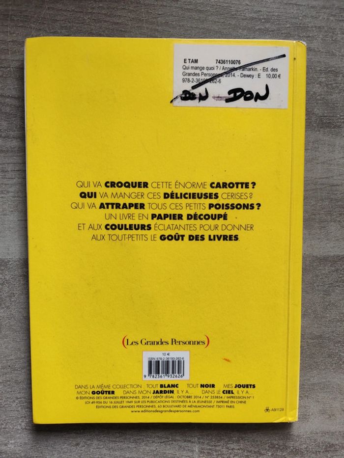 Livre qui mange quoi ? Auteur : Annette tamarkin Quelques traces d'usage possible pour l'extérieur et intérieur (photo 3) En bon état