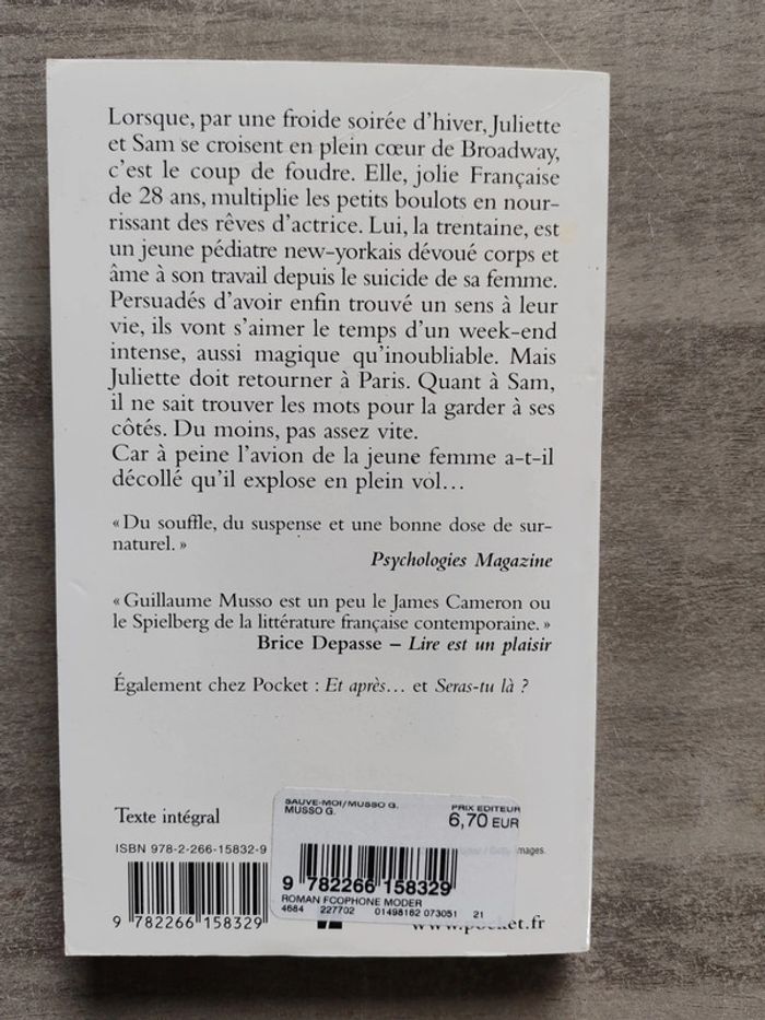 Livre sauve-moi Auteur : Guillaume Musso Édition : pocket Quelques traces d'usure en extérieur intérieur impeccable
