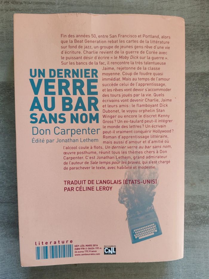Livre un dernier verre au bar sans nom Auteur : don Carpenter Édition : cambourakis En très bon état