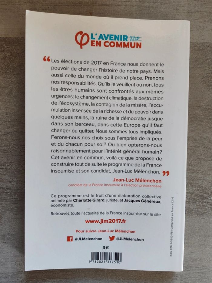 Livre l'avenir en commun Jean-Luc Mélenchon