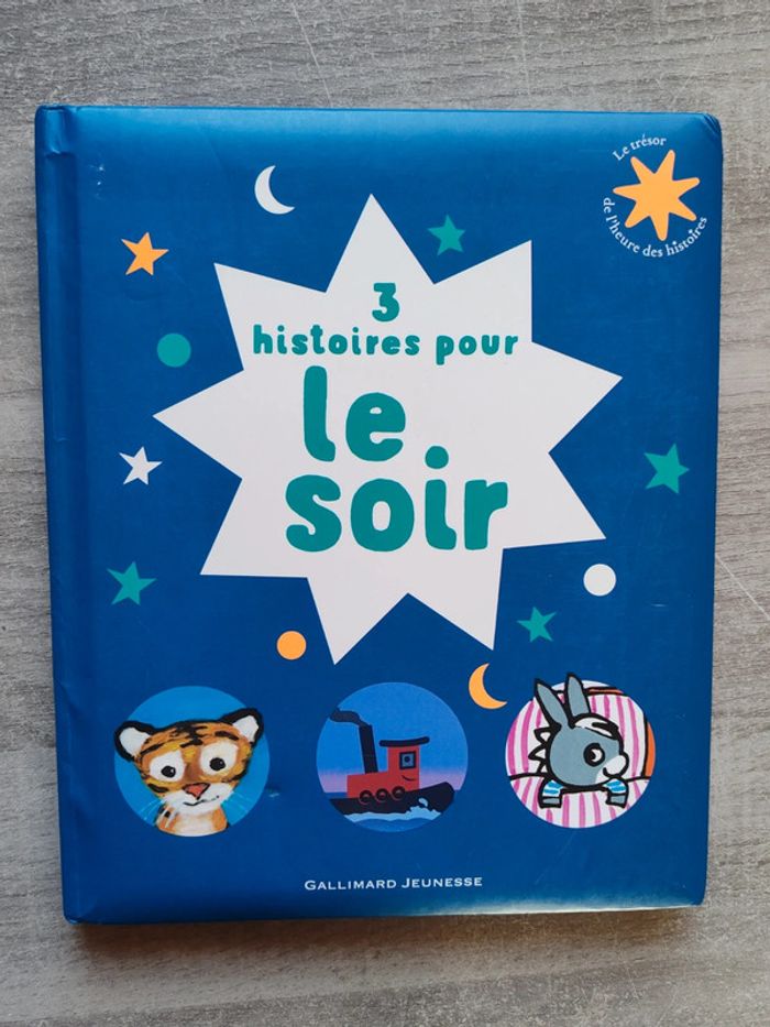 Livre trois histoires pour le soir Édition : Gallimard jeunesse Quelques traces d'usage possible pour l'extérieur Intérieur impeccable