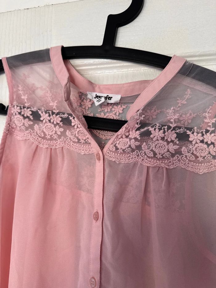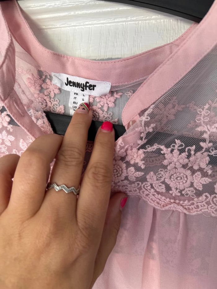 Blouse rose claire avec effet dentelle L - photo numéro 4