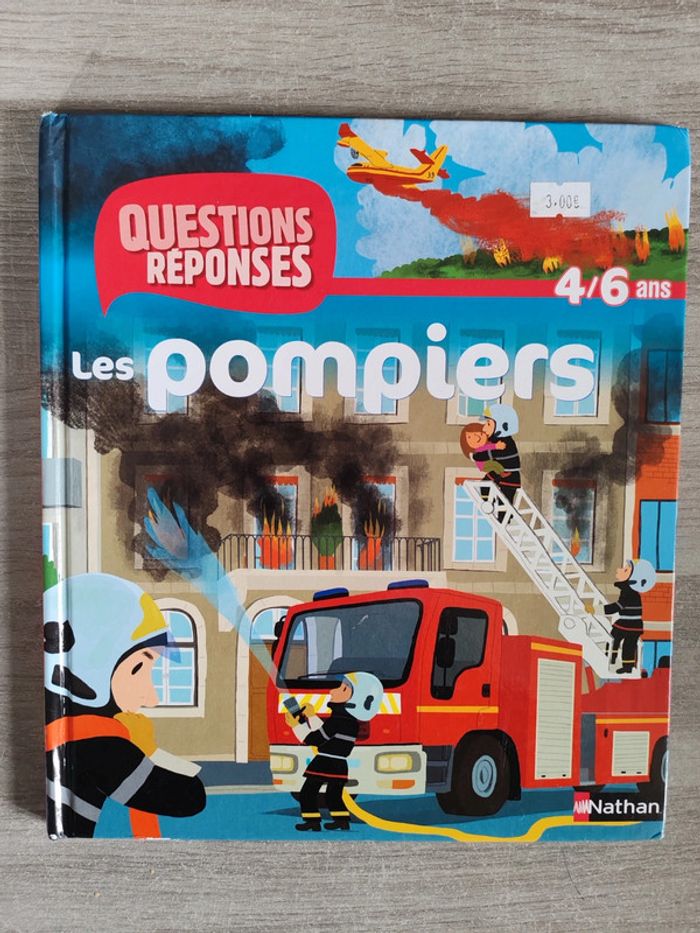 Livre question-réponse Sur le thème des pompiers Marque Nathan 6/9 ans Avec de très jolies illustrations Quelques traces d'usage possible pour l'extérieur