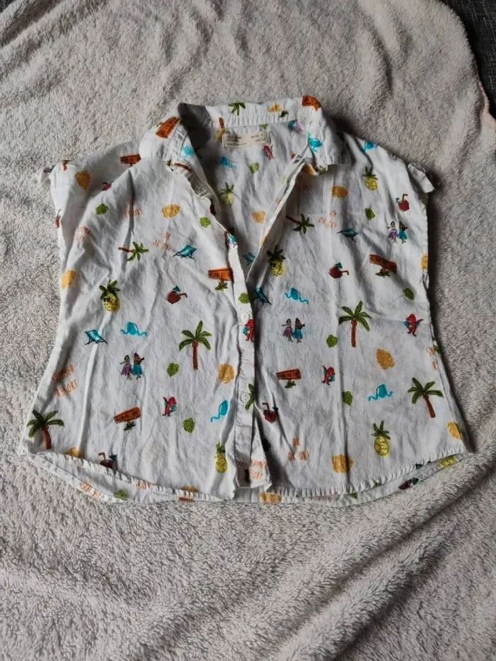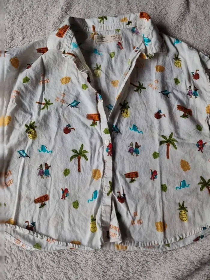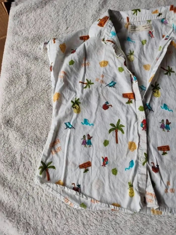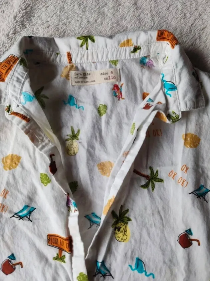 Chemisier blanc à motif vacances marque Zara Kids taille 6 ans Fermeture par boutons #cyndie102116fille6ans #chemisierfille6ans #chemisierzarakids #chemisierété