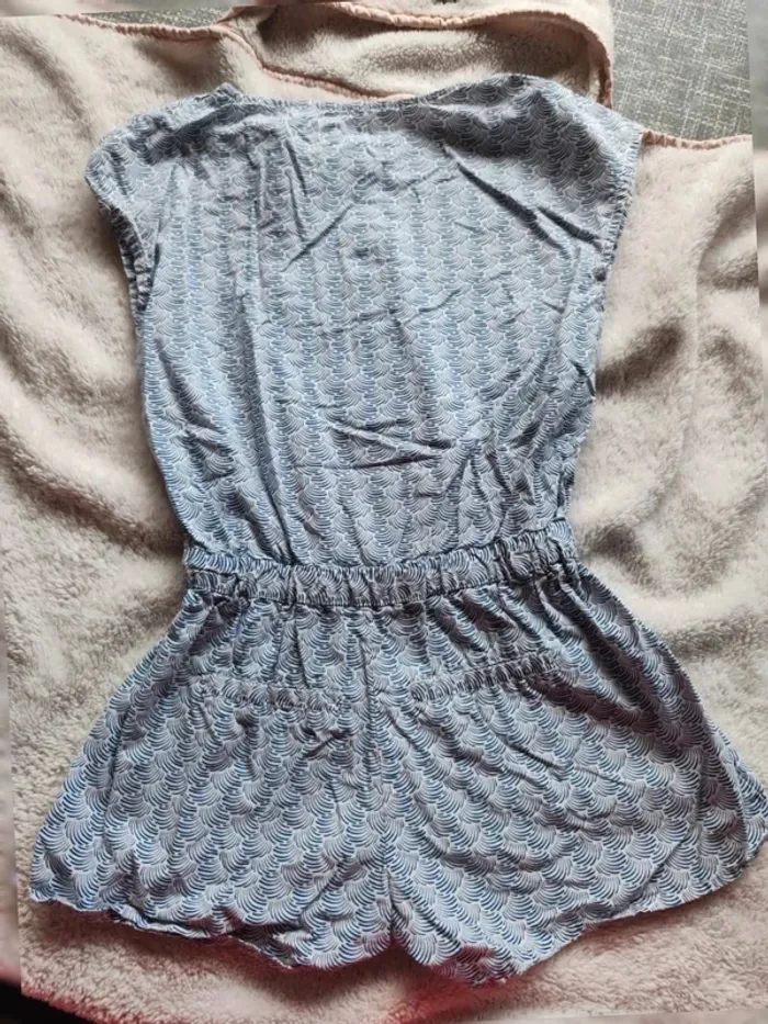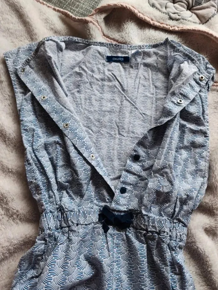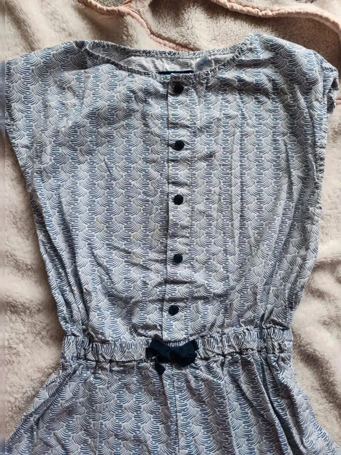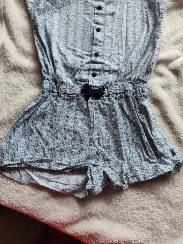 Très joli combishort taille 6 ans Marque Okaïdi Blanche à motifs bleu marine À pressions sur le devant Et fausses poches à l'arrière Bon état voir photos #cyndie102116fille6ans #combishortokaidi #blancbleumarine