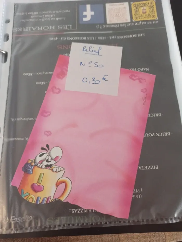 Feuille Diddl de format Relief N°50 Le prix de la feuille est de 0,30€. (A noter qu une seule feuille sera vendue pour ce prix) Vinted n'acceptant pas les annonces en dessous de 1€, je vous laisse créer un lot, je calculerai le prix à la fin. Feuille en très bon état, peut cependant avoir des traces de manipulation. Je vends également d'autres articles Diddl, des feuilles diddl, des papiers à lettres, des sac et sachets. N'hésitez à me donner la liste de vos feuilles manquantes. Article d'occasion, pas de reprise, ni d'échange. #havanafeuillerelief