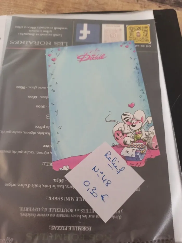Feuille Diddl de format Relief N°48 Le prix de la feuille est de 0,30€. (A noter qu une seule feuille sera vendue pour ce prix) Vinted n'acceptant pas les annonces en dessous de 1€, je vous laisse créer un lot, je calculerai le prix à la fin. Feuille en très bon état, peut cependant avoir des traces de manipulation. Je vends également d'autres articles Diddl, des feuilles diddl, des papiers à lettres, des sac et sachets. N'hésitez à me donner la liste de vos feuilles manquantes. Article d'occasion, pas de reprise, ni d'échange. #havanafeuillerelief