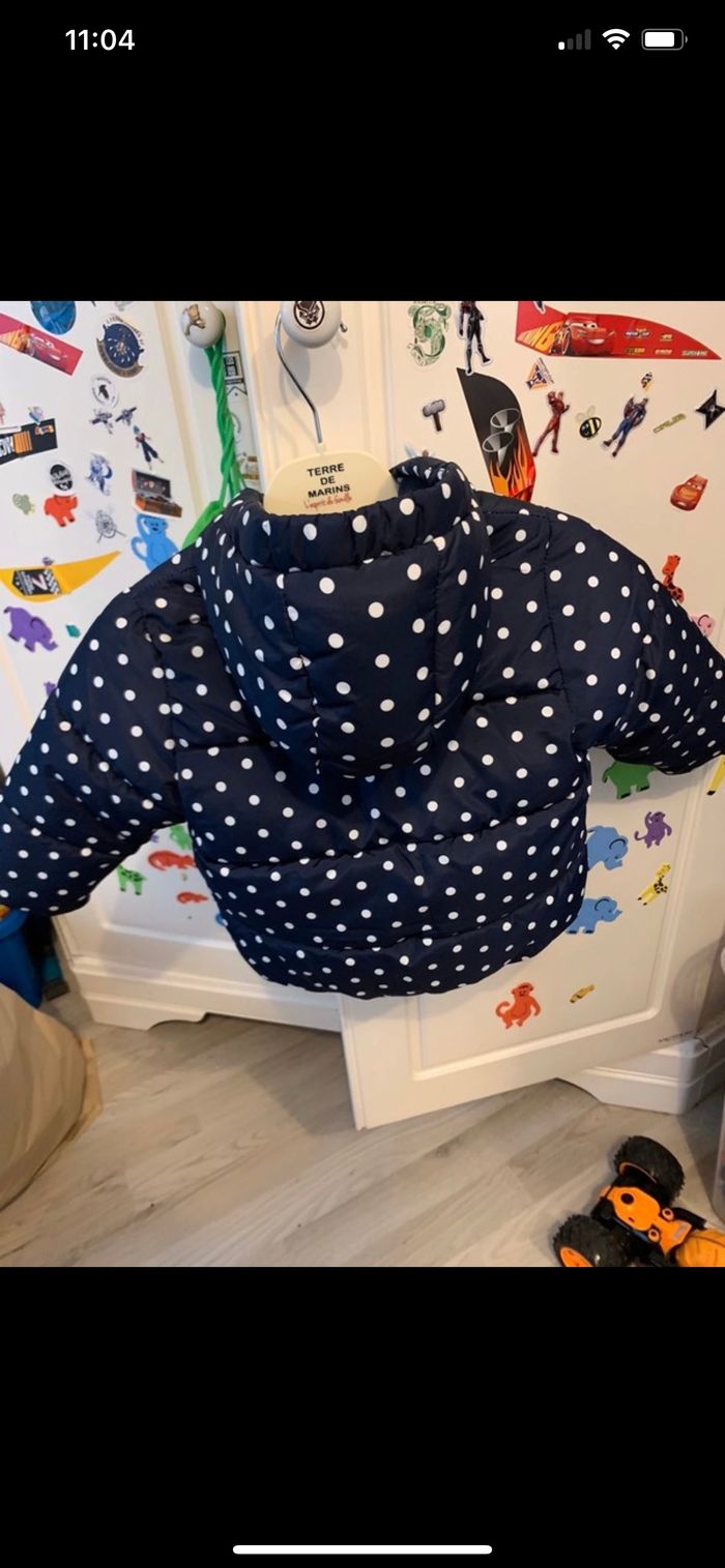 Manteau marine à pois blanc, neuf sans étiquettes, taille 12-18 mois