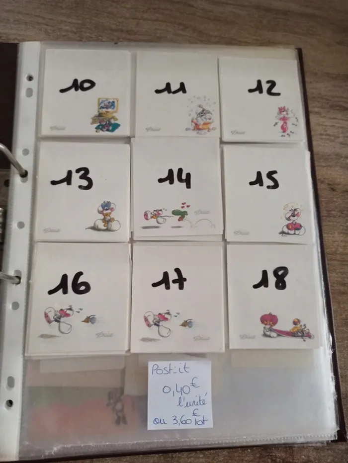 Post-it Diddl de 10 à 18. Le prix du lot est de 3,60€ ou de 0,40€ l'unité. Vinted n'acceptant pas les montants en dessous de 1€, je vous laisse créer un lot et je calculerai le montant final :) Merci de m'indiquer les numéros souhaité. Présente des traces de manipulation. Je vends d'autres sachets, feuilles, papier à lettres ect, n'hésitez pas à me donner vos listes de manquantes. #havanapostitdiddl