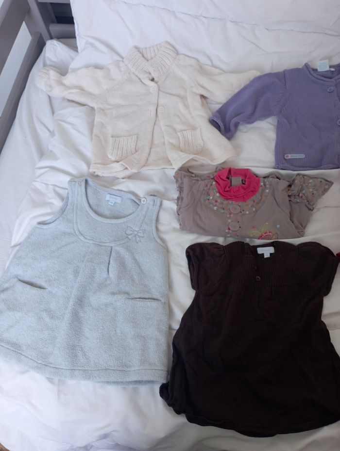 neuf ou excellent état 1 sous pull 6 robes 2 gilets 4 tee shirt manches longues 1 haut de pijama