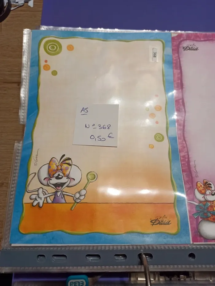 Feuille Diddl de format A5 N°368 Le prix de la feuille est de 0,50€. (A noter qu une seule feuille sera vendue pour ce prix) Vinted n'acceptant pas les prix en dessous de 1€. Je vous laisse créer un lot, je calculerai le prix à la fin. Feuille en très bon état, peut cependant avoir des traces de manipulation. Je vends également d'autres articles Diddl, des feuilles diddl, des papiers à lettres, des sac et sachets. N'hésitez à me donner la liste de vos feuilles manquantes. Article d'occasion, pas de reprise, ni d'échange. #havanafeuillea5
