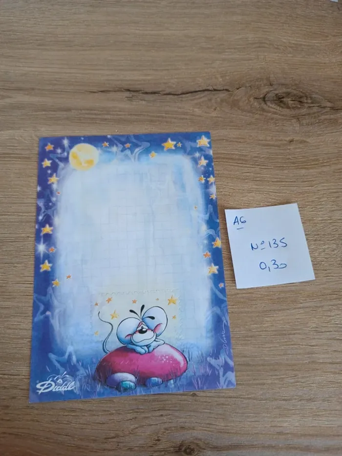 Feuille Diddl de format A6 N°135 Le prix de la feuille est de 0,30€. (A noter qu une seule feuille sera vendue pour ce prix) Vinted n'acceptant pas les annonces en dessous de 1€, je vous laisse créer un lot, je calculerai le prix à la fin. Feuille en très bon état, peut cependant avoir des traces de manipulation. Je vends également d'autres articles Diddl, des feuilles diddl, des papiers à lettres, des sac et sachets. N'hésitez à me donner la liste de vos feuilles manquantes. Article d'occasion, pas de reprise, ni d'échange. #havanafeuillea6