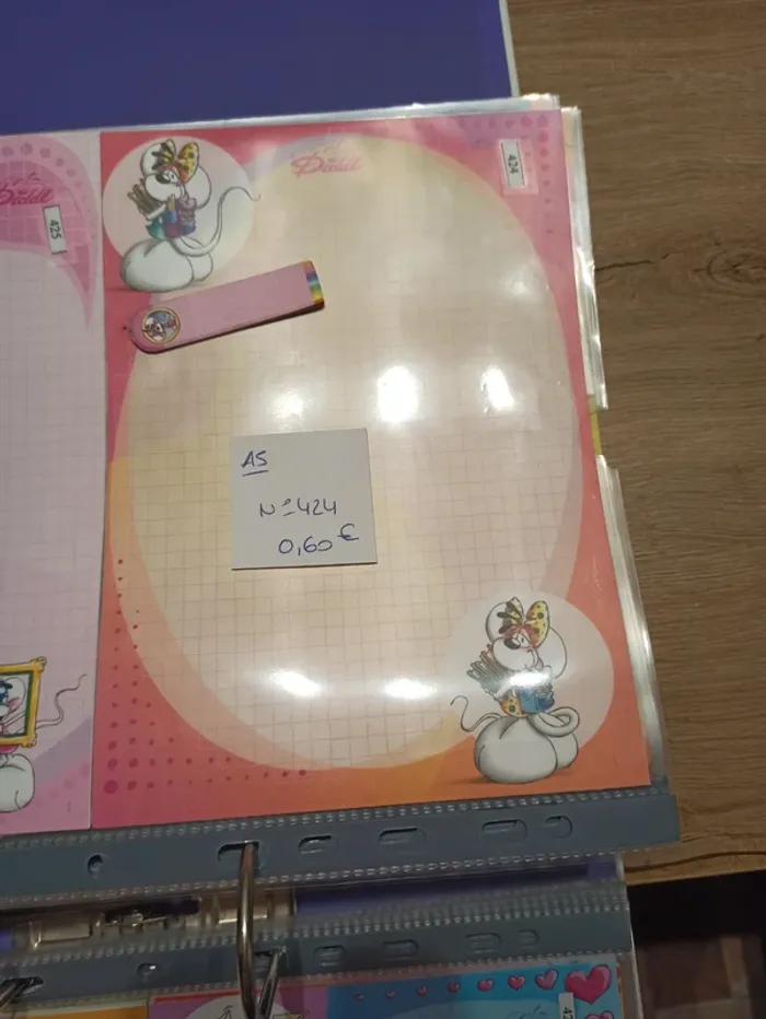 ATTENTION, LA FEUILLE VENDUE NE SERA PAS LA NUMERO 1. Feuille Diddl de format A5 N°424 Le prix de la feuille est de 0,60€. (A noter qu une seule feuille sera vendue pour ce prix) Vinted n'acceptant pas les prix en dessous de 1€. Je vous laisse créer un lot, je calculerai le prix à la fin. Feuille en très bon état, peut cependant avoir des traces de manipulation. Je vends également d'autres articles Diddl, des feuilles diddl, des papiers à lettres, des sac et sachets. N'hésitez à me donner la liste de vos feuilles manquantes. Article d'occasion, pas de reprise, ni d'échange. #havanafeuillea5