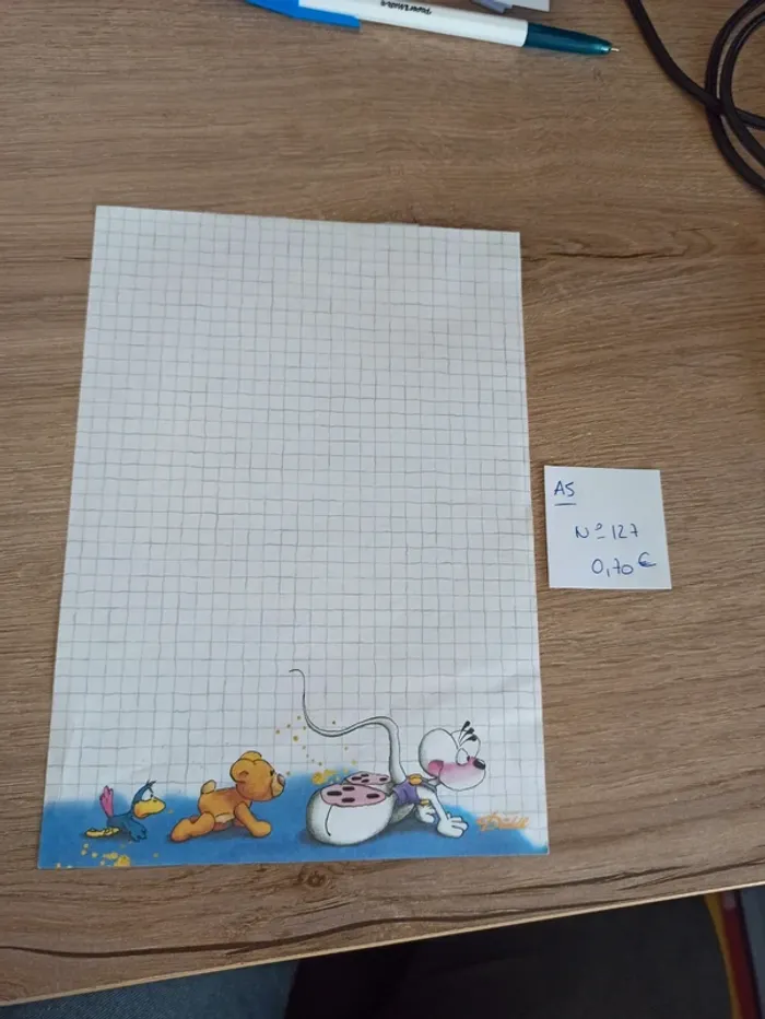 Feuille Diddl de format A5 N°127. Le prix de la feuille est de 0,70€. (A noter qu une seule feuille sera vendue pour ce prix) Vinted n'acceptant pas les prix en dessous de 1€. Je vous laisse créer un lot, je calculerai le prix à la fin. Feuille en très bon état, peut cependant avoir des traces de manipulation. Je vends également d'autres articles Diddl, des feuilles diddl, des papiers à lettres, des sac et sachets. N'hésitez à me donner la liste de vos feuilles manquantes. Article d'occasion, pas de reprise, ni d'échange. #havanafeuillea5