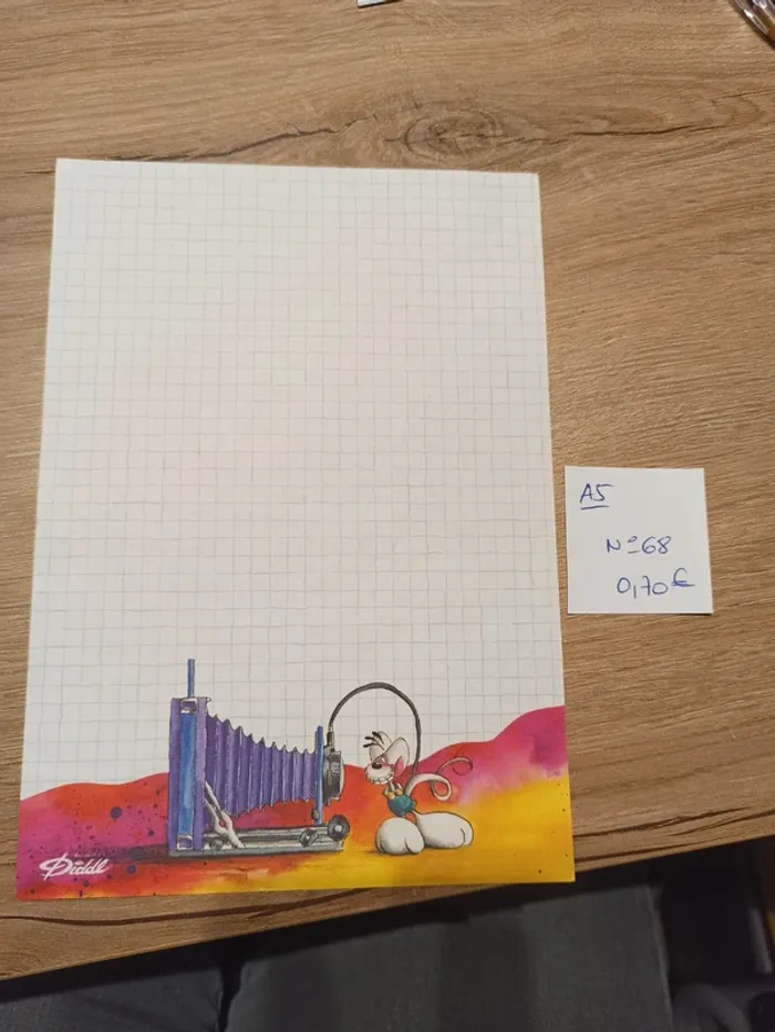 Feuille Diddl de format A5 N°68. Le prix de la feuille est de 0,70€. (A noter qu une seule feuille sera vendue pour ce prix) Vinted n'acceptant pas les prix en dessous de 1€. Je vous laisse créer un lot, je calculerai le prix à la fin. Feuille en très bon état, peut cependant avoir des traces de manipulation. Je vends également d'autres articles Diddl, des feuilles diddl, des papiers à lettres, des sac et sachets. N'hésitez à me donner la liste de vos feuilles manquantes. Article d'occasion, pas de reprise, ni d'échange. #havanafeuillea5
