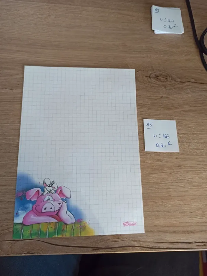 Feuille Diddl de format A5 N°166. Le prix de la feuille est de 0,70€. (A noter qu une seule feuille sera vendue pour ce prix) Vinted n'acceptant pas les prix en dessous de 1€. Je vous laisse créer un lot, je calculerai le prix à la fin. Feuille en très bon état, peut cependant avoir des traces de manipulation. Je vends également d'autres articles Diddl, des feuilles diddl, des papiers à lettres, des sac et sachets. N'hésitez à me donner la liste de vos feuilles manquantes. Article d'occasion, pas de reprise, ni d'échange. #havanafeuillea5