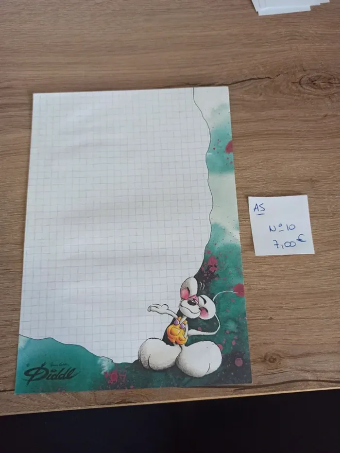 Feuille Diddl de format A5 N°10 Le prix de la feuille est de 7,00€. (A noter qu une seule feuille sera vendue pour ce prix) Feuille en très bon état, peut cependant avoir des traces de manipulation. Je vends également d'autres articles Diddl, des feuilles diddl, des papiers à lettres, des sac et sachets. N'hésitez à me donner la liste de vos feuilles manquantes. Article d'occasion, pas de reprise, ni d'échange. #havanafeuillea5