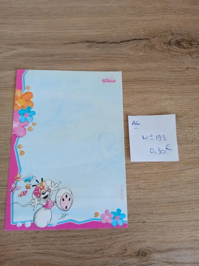 Feuille Diddl de format A6 N°193 Le prix de la feuille est de 0,30€. (A noter qu une seule feuille sera vendue pour ce prix) Vinted n'accepte pas les prix en dessous d'un euros, le montant final sera calculé une fois votre lot choisi. Feuille en très bon état, peut cependant avoir des traces de manipulation. Je vends également d'autres articles Diddl, des feuilles diddl, des papiers à lettres, des sac et sachets. N'hésitez à me donner la liste de vos feuilles manquantes. Article d'occasion, pas de reprise, ni d'échange. #havanafeuillea6