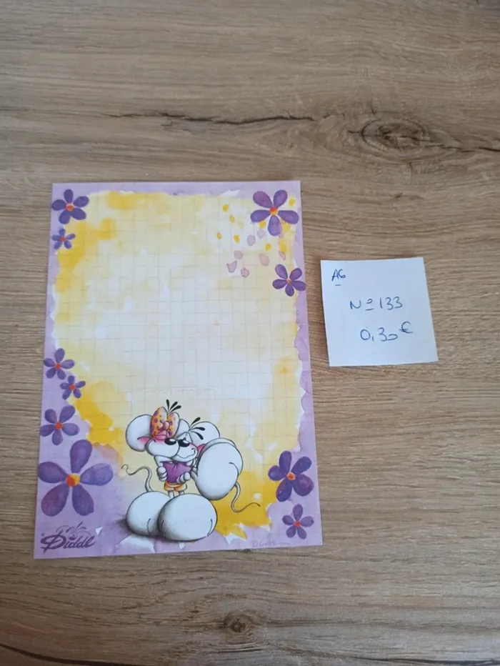Feuille Diddl de format A6 N°133 Le prix de la feuille est de 0,30€. (A noter qu une seule feuille sera vendue pour ce prix) Vinted n'accepte pas les prix en dessous d'un euros, le montant final sera calculé une fois votre lot choisi. Feuille en très bon état, peut cependant avoir des traces de manipulation. Je vends également d'autres articles Diddl, des feuilles diddl, des papiers à lettres, des sac et sachets. N'hésitez à me donner la liste de vos feuilles manquantes. Article d'occasion, pas de reprise, ni d'échange. #havanafeuillea6