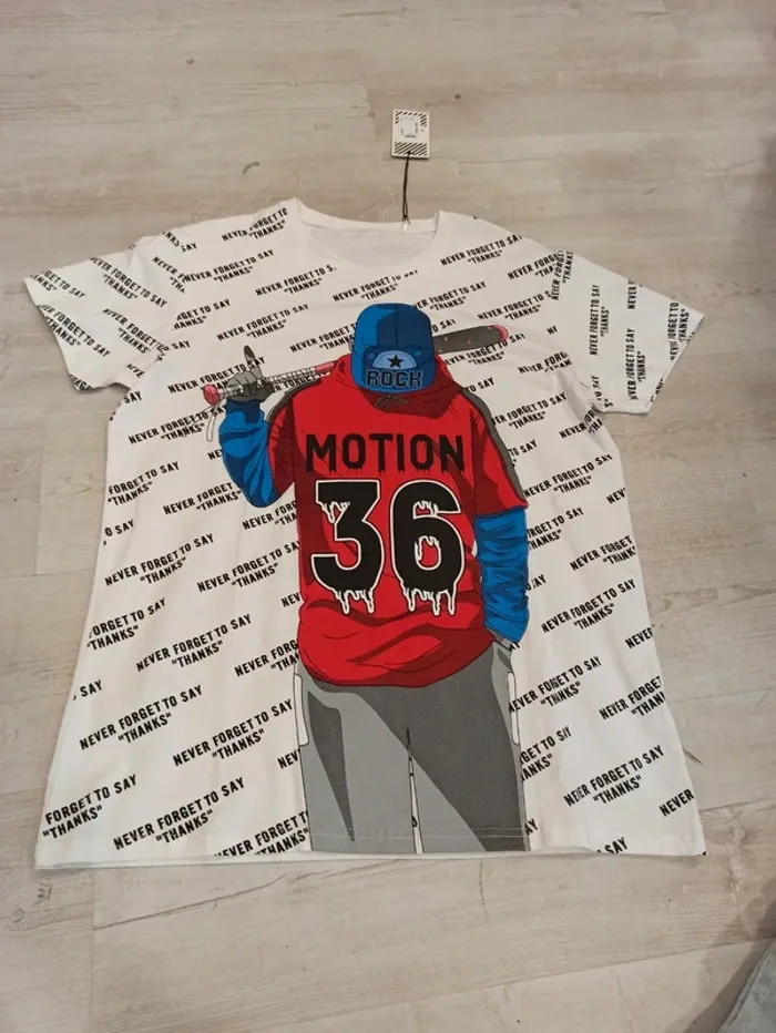 T-shirt pour homme blanc. Motifs sur le devant et l'arrière des manches. Uni sur le dos. Manches courtes. Coupe droite sur le bas. Mesure dessous de bras a dessous de bras : 55cm Article neuf avec étiquette. Prix sur l'étiquette : 19.99€ 129 blanc xl n2