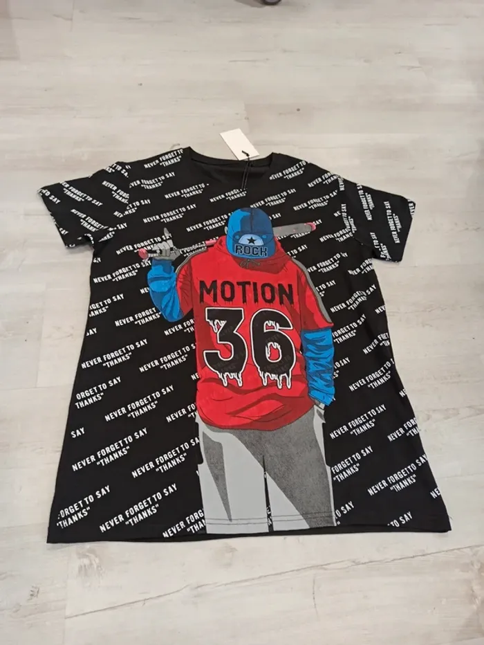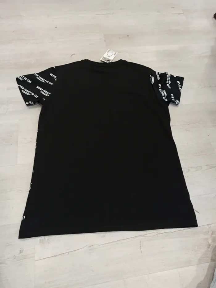 T-shirt pour homme blanc. Motifs sur le devant et l'arrière des manches. Uni sur le dos. Manches courtes. Coupe droite sur le bas. Mesure dessous de bras a dessous de bras : 54cm Article neuf avec étiquette. Prix sur l'étiquette : 19.99€ 129 noir xl n2