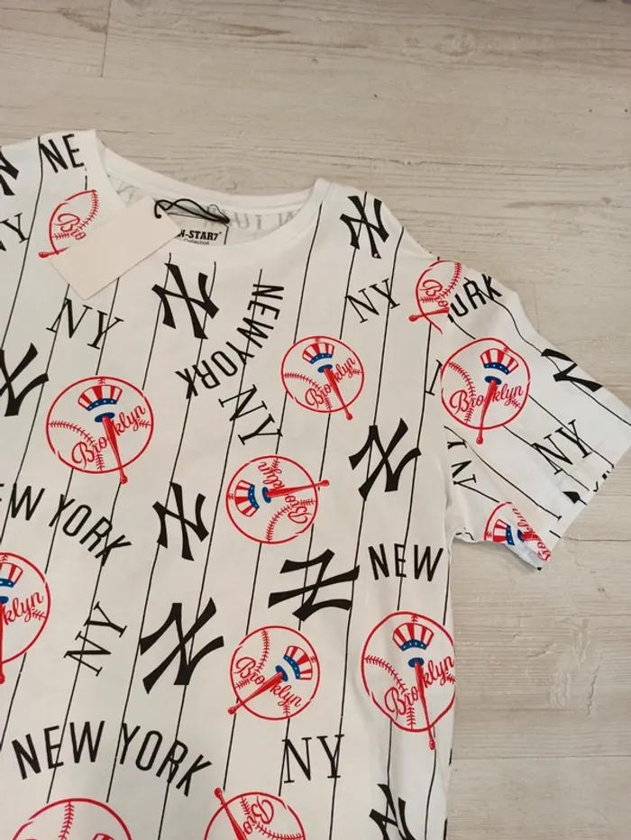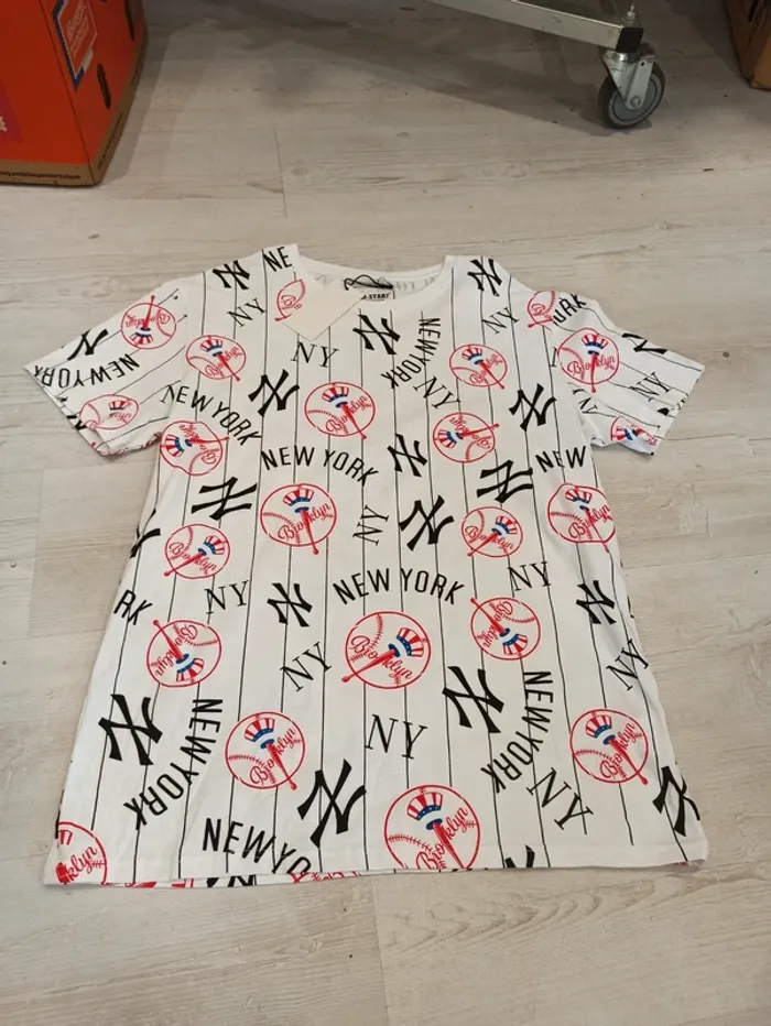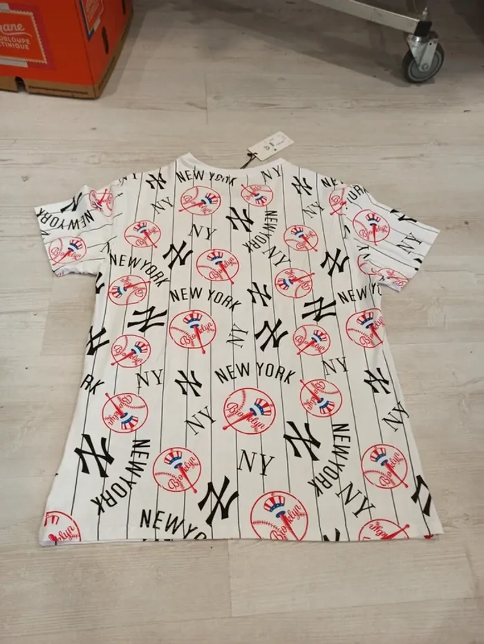 T-shirt blanc manches courtes. Imprimé sur le devant et sur l'arrière. Coupe droite sur le bas. Taille : XXL Mesure dessous de bras à dessous de bras : 54cm Article neuf avec étiquette. Prix sur l'étiquette : 19,99€. 2870 blanc xxl N°2