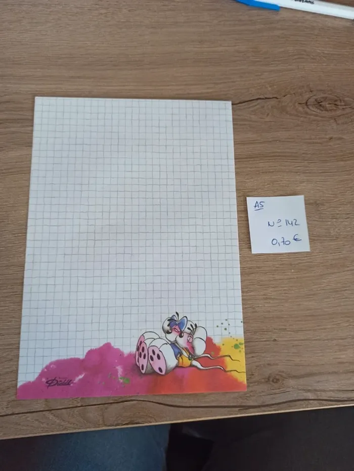 Feuille Diddl de format A5 N°142. Le prix de la feuille est de 0,70€. (A noter qu une seule feuille sera vendue pour ce prix) Vinted n'acceptant pas les prix en dessous de 1€. Je vous laisse créer un lot, je calculerai le prix à la fin. Feuille en très bon état, peut cependant avoir des traces de manipulation. Je vends également d'autres articles Diddl, des feuilles diddl, des papiers à lettres, des sac et sachets. N'hésitez à me donner la liste de vos feuilles manquantes. Article d'occasion, pas de reprise, ni d'échange. #havanafeuillea5