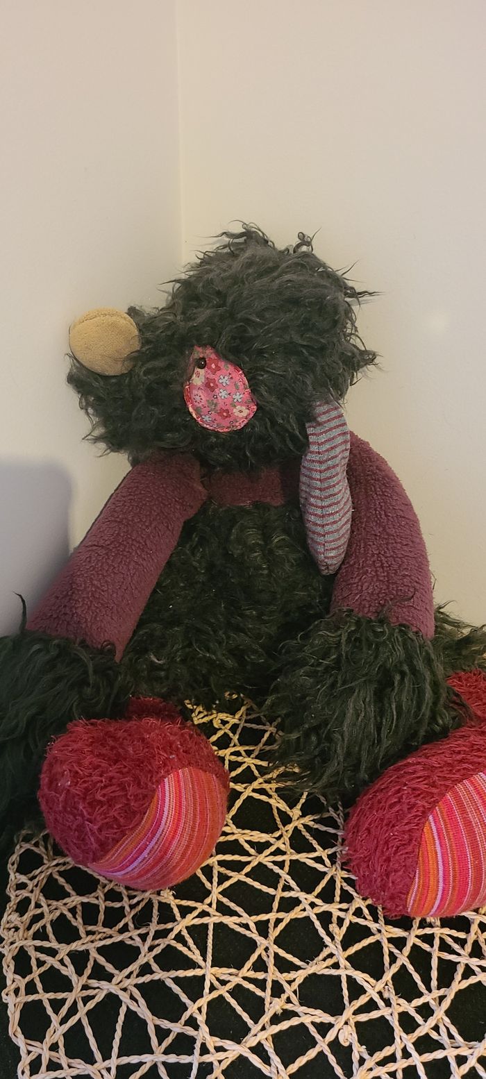 Peluche chien MOULIN ROTY noir bordeaux poils longs 40 cm