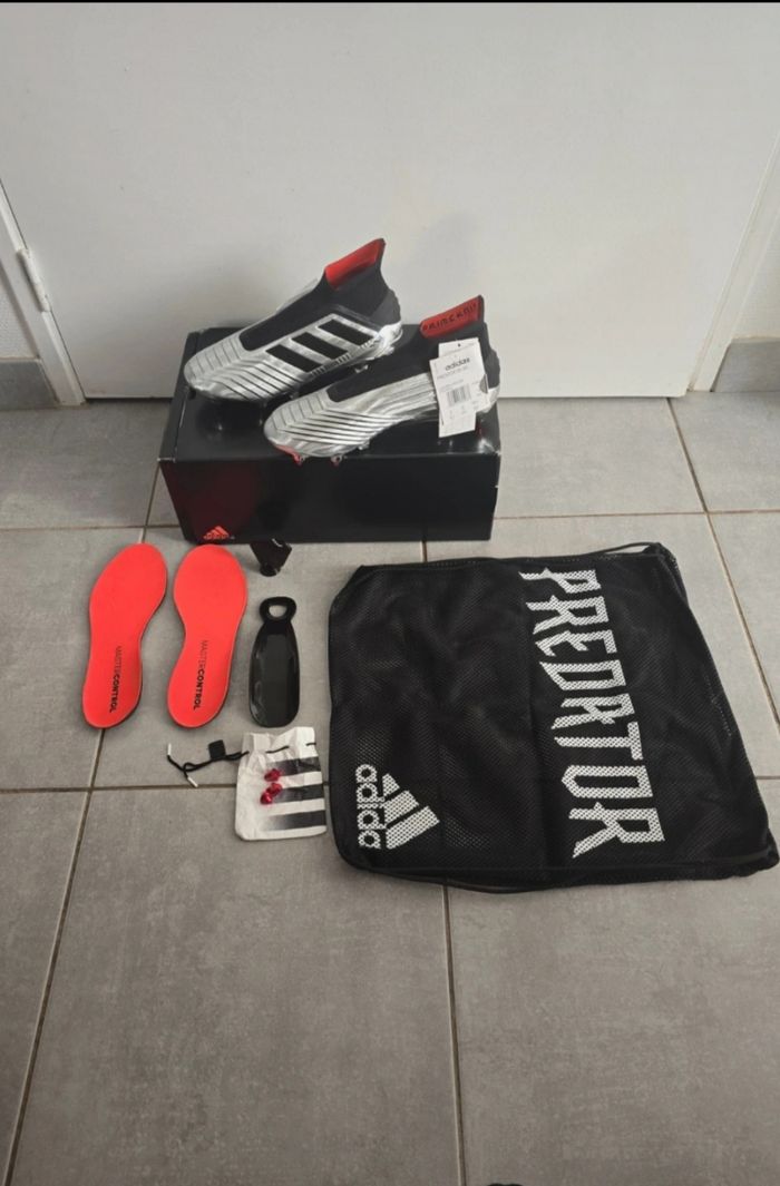 A VENDRE Paire de chaussures de football ADIDAS PREDATOR 19+ SG Neuve vendu dans le carton d'origine avec semelles + chausse pied + crampons de rechange et démonte crampons + housse de protection Taille 39 1/3