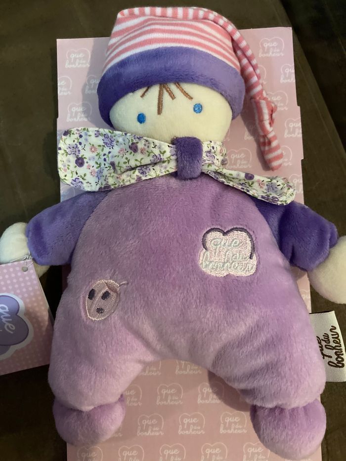 Joli doudou lutin Taille 20 cms Coloris lilas Marque que du bonheur Neuf jamais déballé de la boîte Idéal cadeau de naissance Non négociable Envoi rapide et soigné
