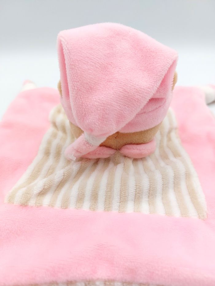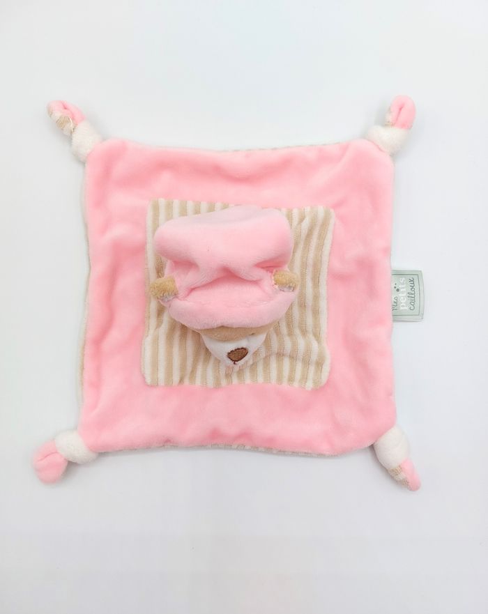 Doudou plat ours bonnet rose beige blanc MES PETITS CAILLOUX CMP PE9700 TTBE - photo numéro 3