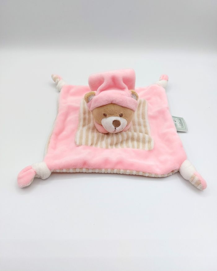 Doudou plat ours bonnet rose beige blanc MES PETITS CAILLOUX CMP PE9700 TTBE - photo numéro 1