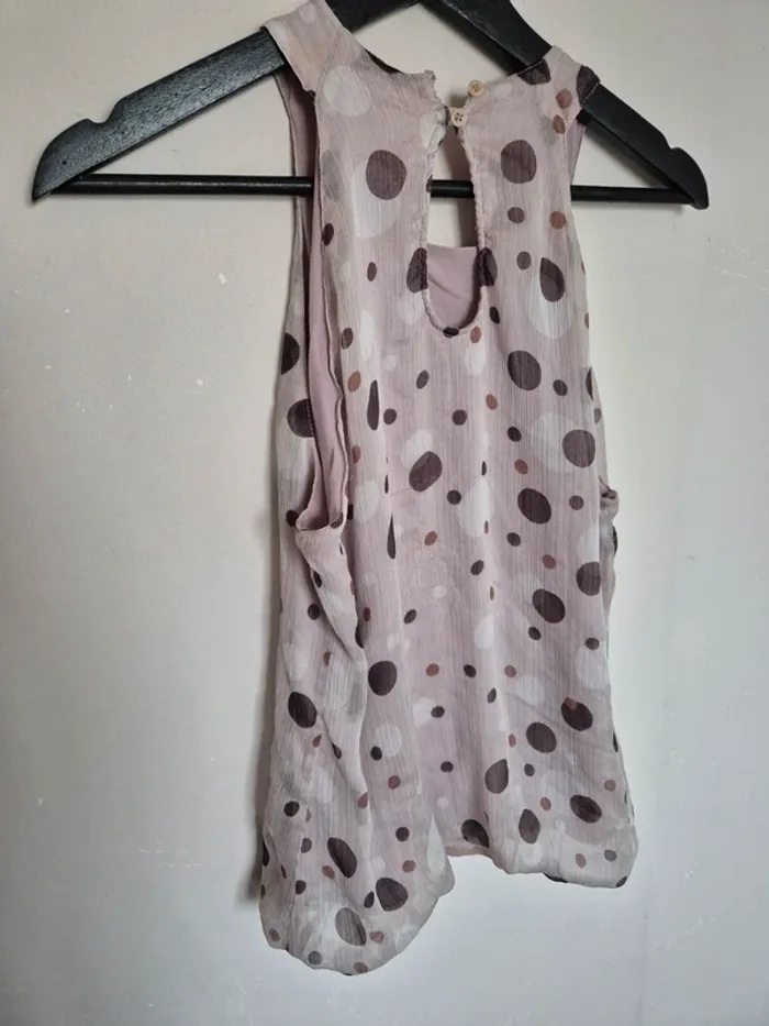 📌 Lot 20% de remise pour l'achat de 5 articles, suite ... Débardeur beige qui tire sur la couleur lila, avec des rond marron, en voile, élastiqué sur le bas, très sympa, ➡️Largeur à plat sous les bras  50 cm ➡️Longueur 56 cm ➡️ 100 % polyester ⭐ Excellent état ✈Envoi rapide des colis 💗 Abonnez vous à mon profil, nombreux articles ajoutés régulièrement ! 🌸 Tapez Laetitresors pour voir mes annonces #laetitresors_debardeur40 #debardeur #promod #marron #beige #voile #ressere #elastique #bretelle #laetitresors