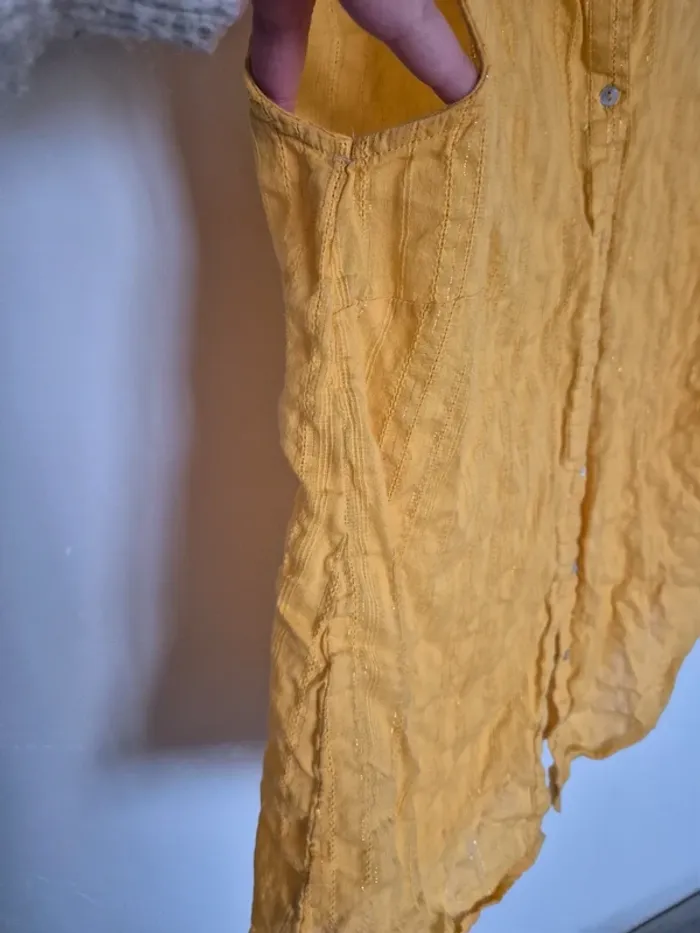 📌 Lot 20% de remise pour l'achat de 5 articles, suite ... Blouse jaune, légèrement brillante, boutonnée sur le devant, ➡️Largeur à plat sous les bras  54 cm ➡️Longueur 67 cm ⭐ Excellent état ✈Envoi rapide des colis 💗 Abonnez vous à mon profil, nombreux articles ajoutés régulièrement ! 🌸 Tapez Laetitresors pour voir mes annonces #laetitresors_debardeur42 #blouse #debardeur #kiabi #bouton #boutonée #brillant #large #bretelle #laetitresors