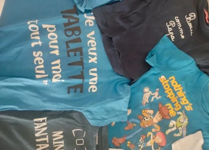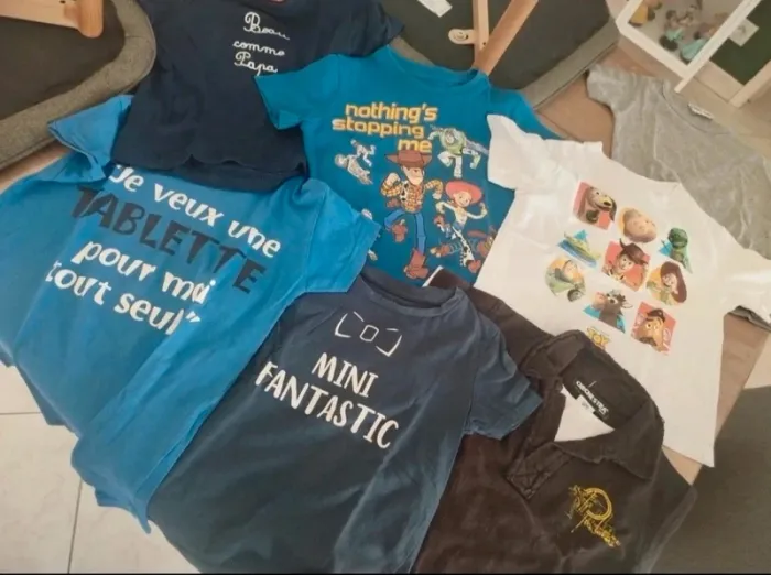 Lot de 7 tee shirt 2 de Disneyland dessin qui commence légèrement a s'effacer voir photo vraiment léger . Et le reste tt en super état