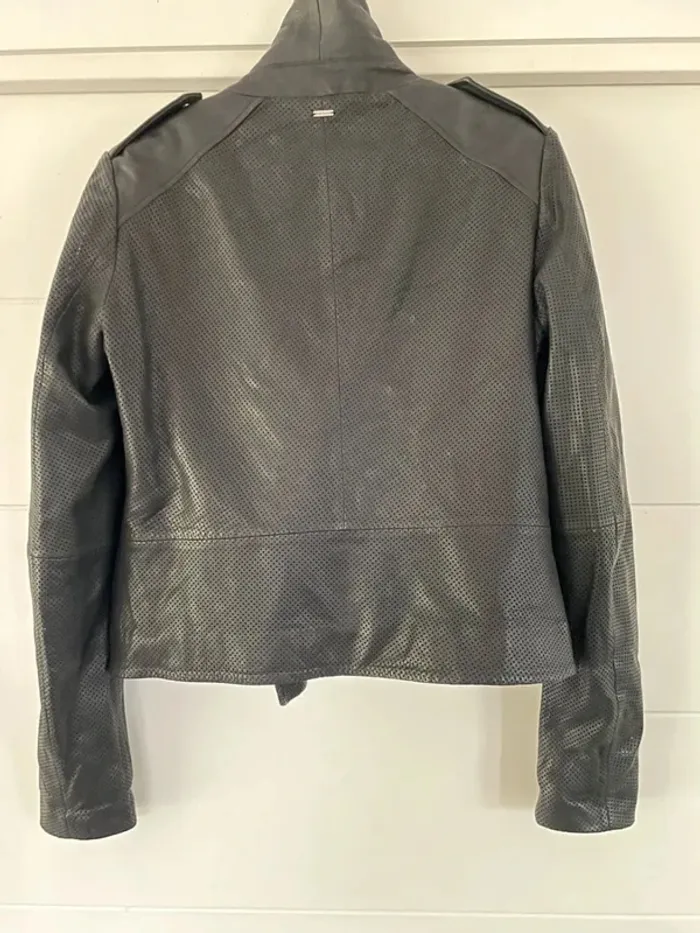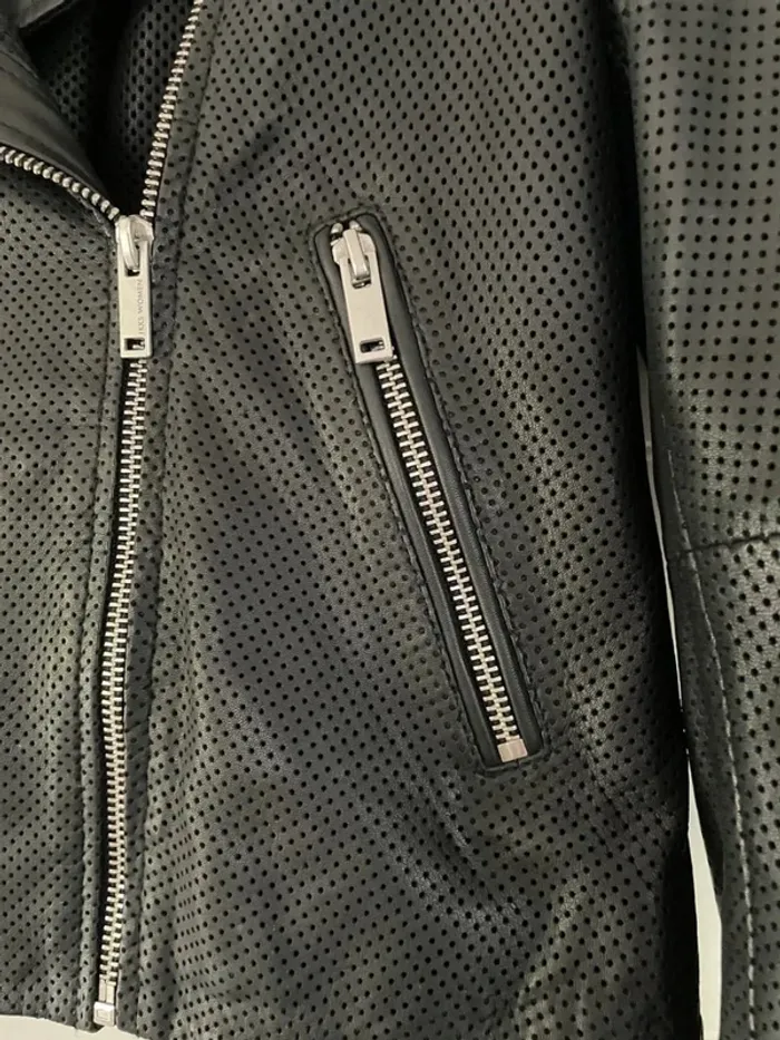 Perfecto IKKS noir en cuir perforé taille M - photo numéro 4